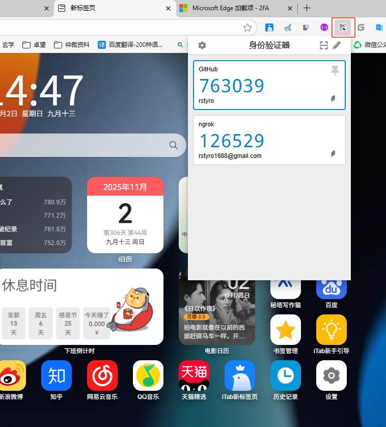 Authenticator一般都有应用的浏览器插件: 除了安装app应用,也可以安装浏览器插件,Authenticator: 2FA Client(Edge/Chrome插件)