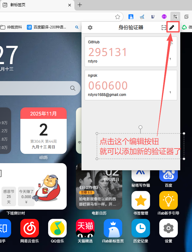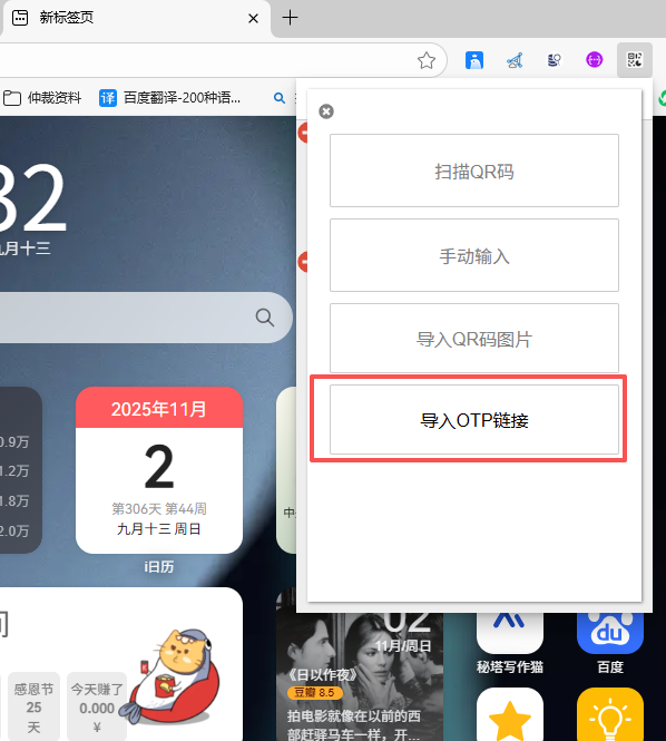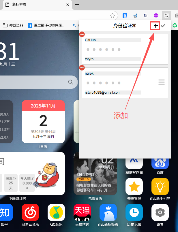 Github和ngrok的 身份验证,那我们要如何绑定呢?安装之后点击插件,就可以手动添加或者导入OTP链接或者二维码图片,我们可以导入上面例子中的链接: