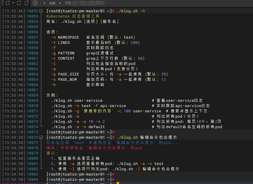 为此,我封装了一个 klog.sh工具,极大提升了 Kubernetes 日志查询的效率和体验。